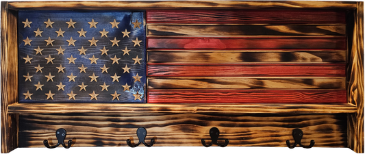 Handmade Wood American Flag Coat Rack