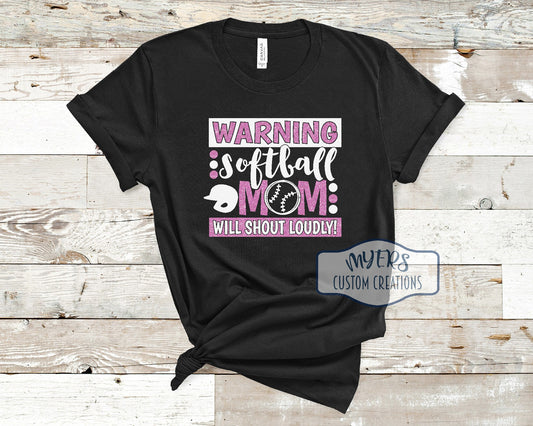 Warning Baseball/Softball Mom Will Shout Loudly Shirt