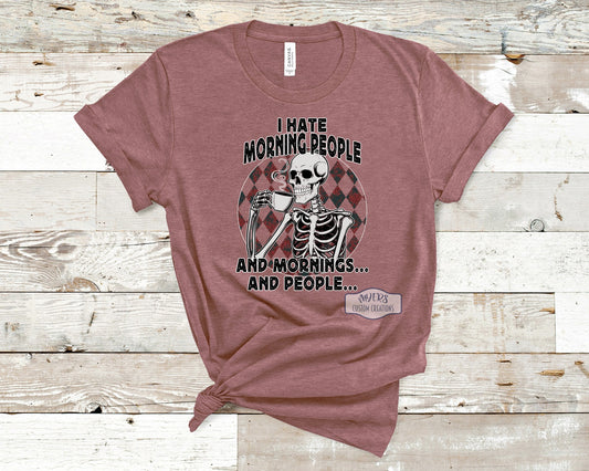 I Hate Morning People Skeleton Shirt RTS