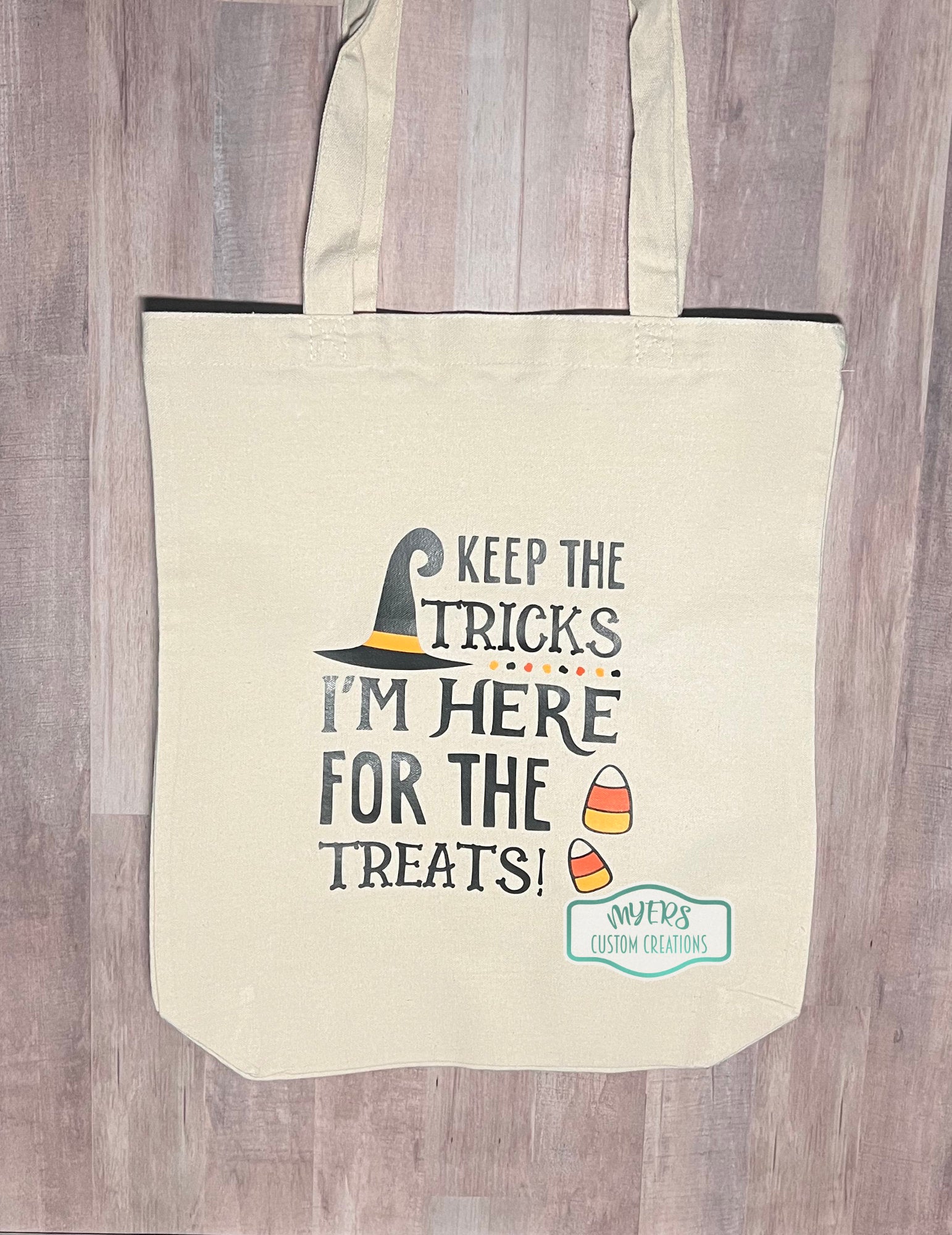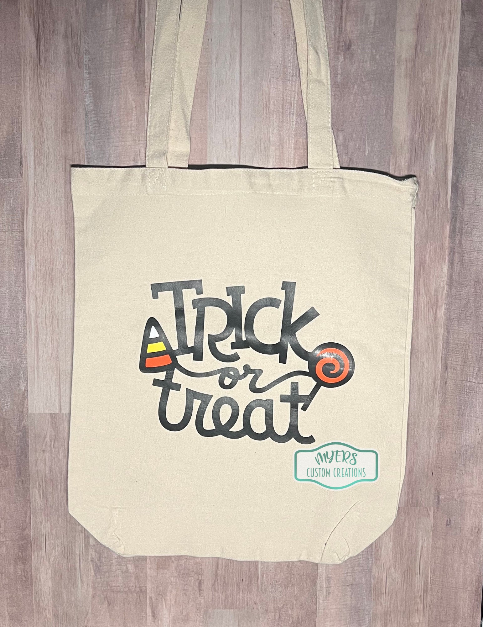 Be the coolest trick or treater on the block with these Trick or Treat Bags! These are premade and ready to ship, but can be personalized with a custom name added.